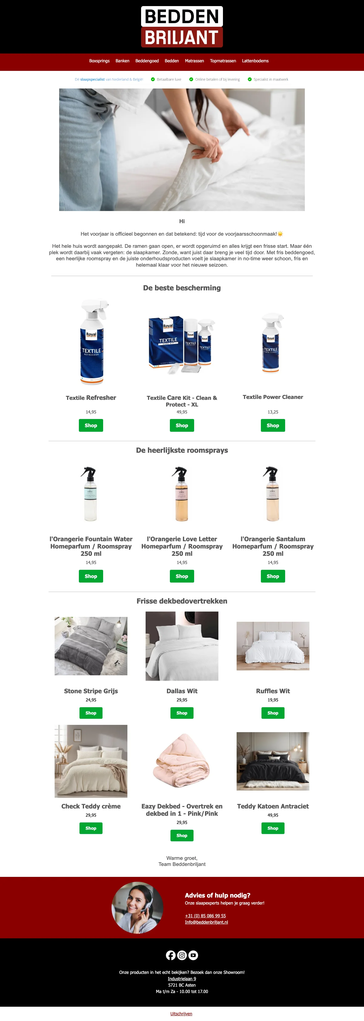 Bij aankoop van een boxspring bij Beddenbriljant krijg je nu gratis een dekbed en kussens. Dit is de perfecte gelegenheid om je slaapkamer in één keer compleet te maken. Geniet van een heerlijke nachtrust met deze comfortabele extra's die je slaapervaring verbeteren.