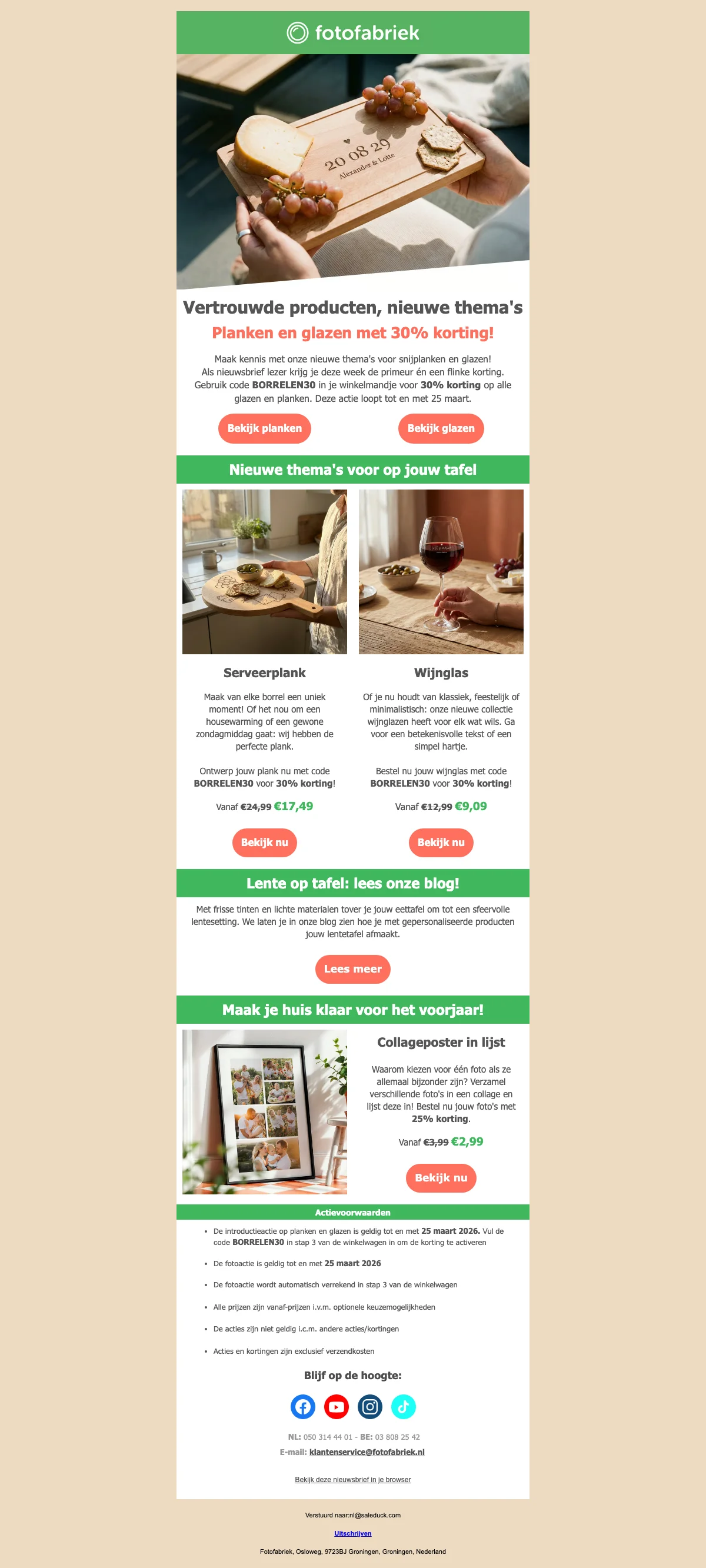 Ontdek de diversiteit van onze cadeaucollectie en bespaar 25% op je aankoop. Van fotoboeken tot unieke wanddecoraties, er is voor ieder wat wils. Deel deze actie met vrienden en familie en geniet samen van de voordelen.